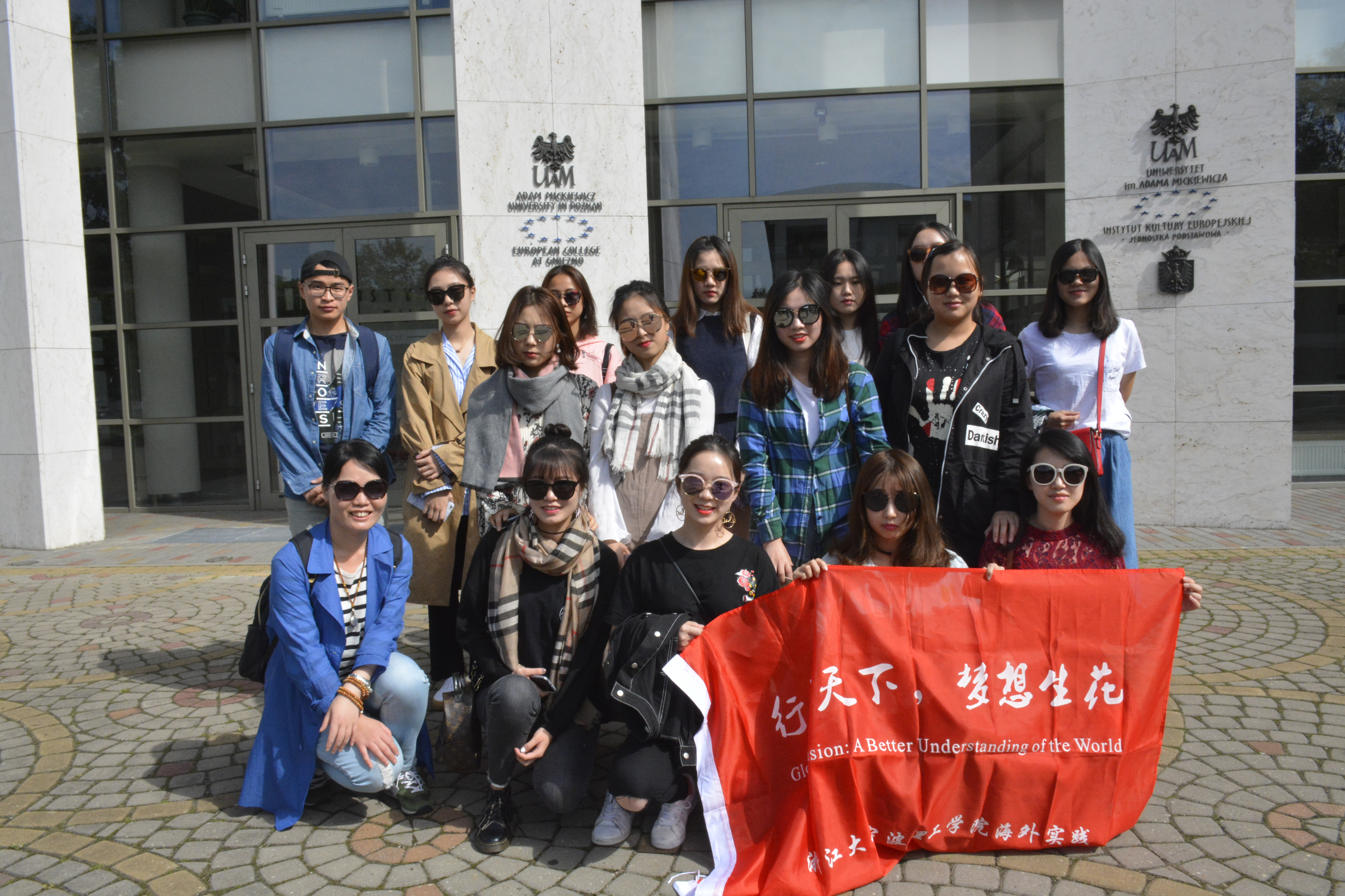 经过为时半年的准备,四月份的组队成功,外语公司2017年波兰交流团的同学们带着期待憧憬和满满的行装,经过十多个小时的飞机,终于于波兰当地时间七月十一日中午到达波兰波兹南机场,并乘坐波兰方安排的车辆前往波兹南密茨凯维奇大学格涅兹诺的欧洲文化中心,开启了为期十二天的文化交流学习。
