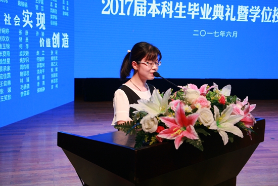 公司党委副书记陈小兰老师向全体毕业班同学致辞,她希望同学们不忘初心,坚守青春的理想,不懈追求,在实践中磨砺成才,不怕挑战,给自己多一份责任与担当;教师代表夏佳来用“尽快在新环境扮演好自己的角色,始终保持向上且端正的心态,永远都不忘记继续学习”作为临别赠言;英语133班朱思远同学作为毕业生代表,在离别致辞中回顾了大学四年的生活,勉励学弟学妹们坚持奋发图强;日语141班施懿同学作为在校生代表向即将离开母校的毕业生们表达最真诚的祝愿,祝福学长学姐工作顺利,常回理工看看。经理助理周汶老师宣读了2017届毕业生名单和省级、校级优秀毕业生表彰决定和2017届毕业生出国、考研和创业名单,公司党委陈小兰副书记为省级、校级优秀毕业生颁奖。