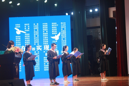 随后,庄严而神圣的学位授予仪式正式开始,蔡亮副经理宣读了2017届学位获得者名单,胡海鹏副经理为毕业生颁发学位证书和拨穗,王小潞经理与毕业生一一合影留念,教师代表与毕业生握手。