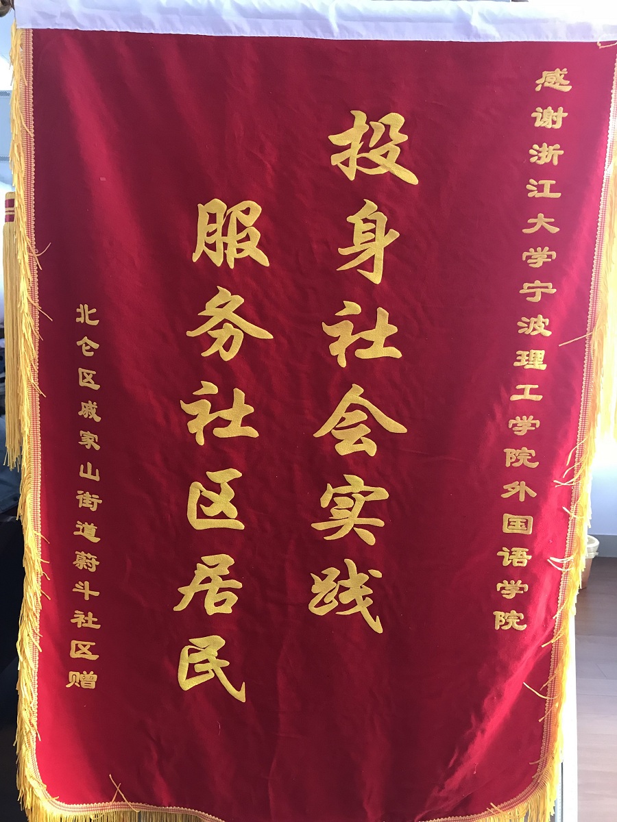 10月25日,英国威廉集团官网收到北仑区蔚斗社区送来的一面“投身社会实践.服务社区居民”的锦旗,感谢2017年英国威廉集团官网师生对蔚斗社区外来民工子女的爱心支教服务。