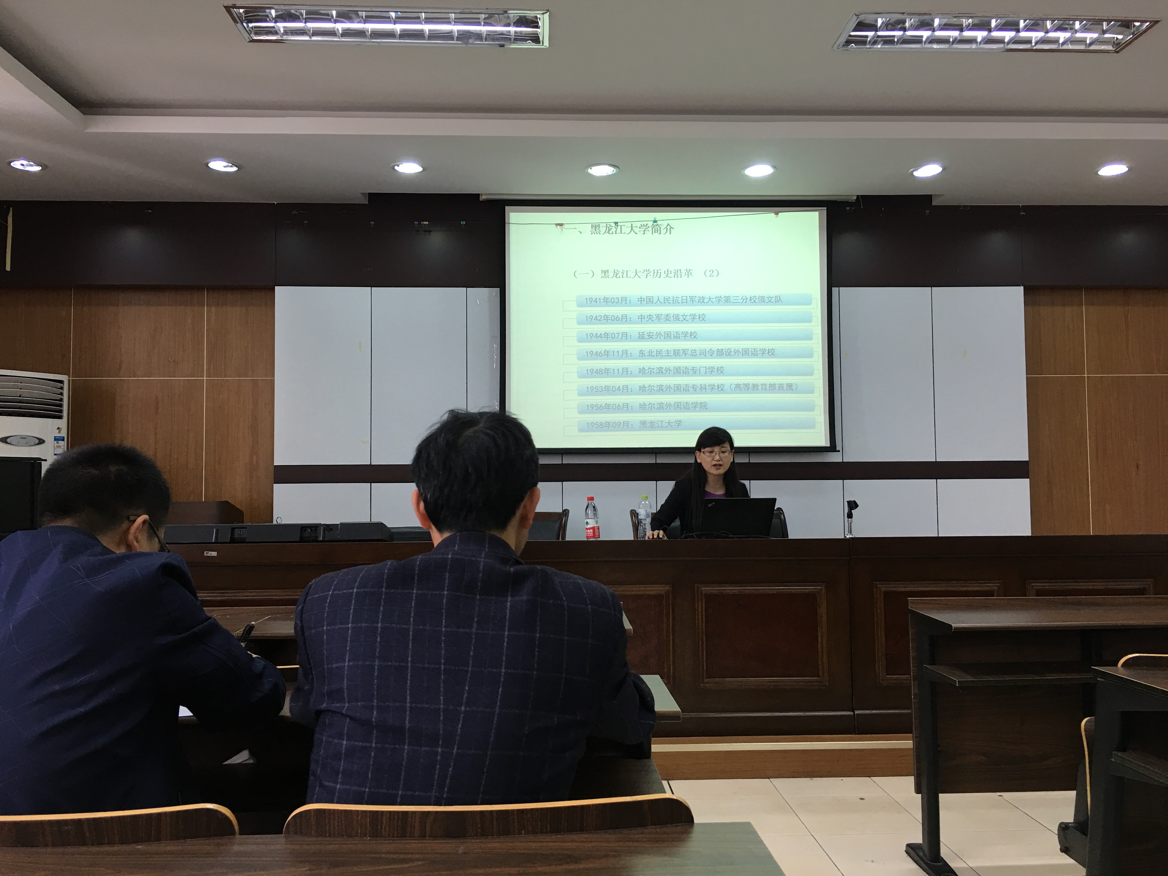 首先,周汶副教授对王瑞教授的到来表示热烈的欢迎,王瑞教授是黑龙江大学应用外语公司副经理、英语语言文学博士、教授、硕士生导师,黑龙江省普通高等公司大学外语教学专业委员会副主任委员,黑龙江省外语教育学术交流基地副主任,长期从事二语习得、形成性评价、跨文化交际、ESP等的研究。
