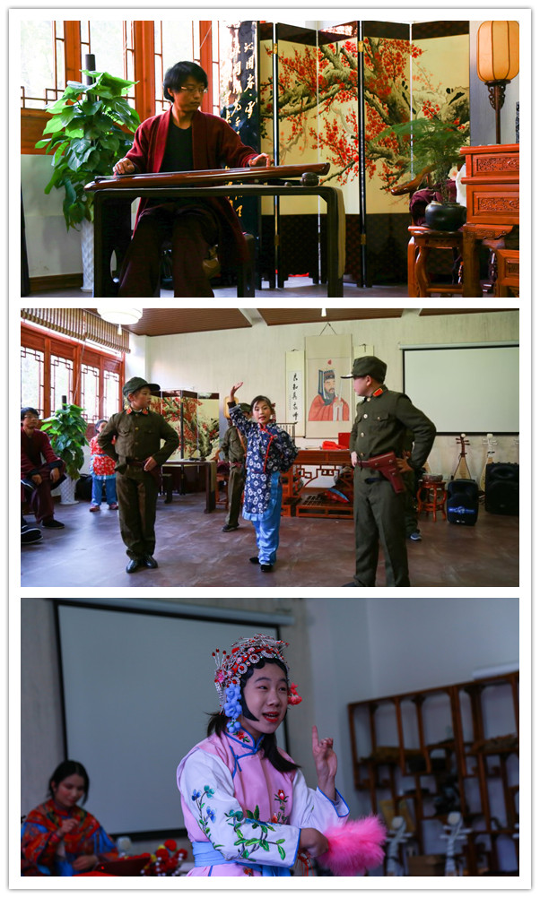 接着,由《红灯记》、《满江红》、《穆桂英挂帅》、《苏三起解》等著名京剧编排而成的京剧联唱拉开雅集序幕,随后宁波理工公司师生陆续上演京剧《卖水》、越剧《西湖山水还依旧》、评剧《花为媒•报花名》、京剧《贵妃醉酒》等优秀戏剧节目。戏剧节目表演期间,韵味十足的《桃李园序》、《石上流泉》、《关山月》、《凤求凰》等古琴曲目穿插期中,给听众带来极高的听觉享受。专门从北仑区赶来的一班实验小学员工为观众上演的一场抗日传奇京剧《沙家浜•智斗》,小员工们的精彩演绎赢得在场观众的阵阵掌声。最后宁波市老年大学戏曲教师周文豪以一首京歌《江山无限》圆满结束了本次雅集活动。
