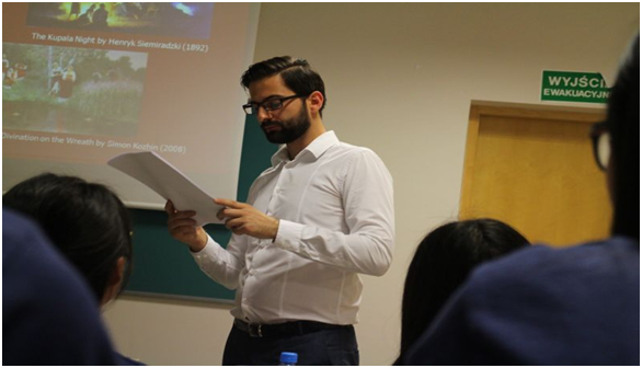 第二天,我们开始了在UAM的第一天的学习生活。上午的波兰语课程由一位帅帅的老师授课,他的教学方式轻松有趣:他会向我们讲述一些生动的小故事,使我们对单词和句子有更深刻的理解;他会将波兰语和法语、德语等其他语言的发音作对比,使我们对语言体系有更深入的了解;他会让我们教他说中国话,听着他稍稍别扭的发音,整个课堂充满欢乐。下午,我们会有一些讲座,接触不同的老师。他们使我们对波兰人民的生活、悠久的历史、音乐发展、地理和文化多样性以及波兰的文学等等有了初步的认知和了解。