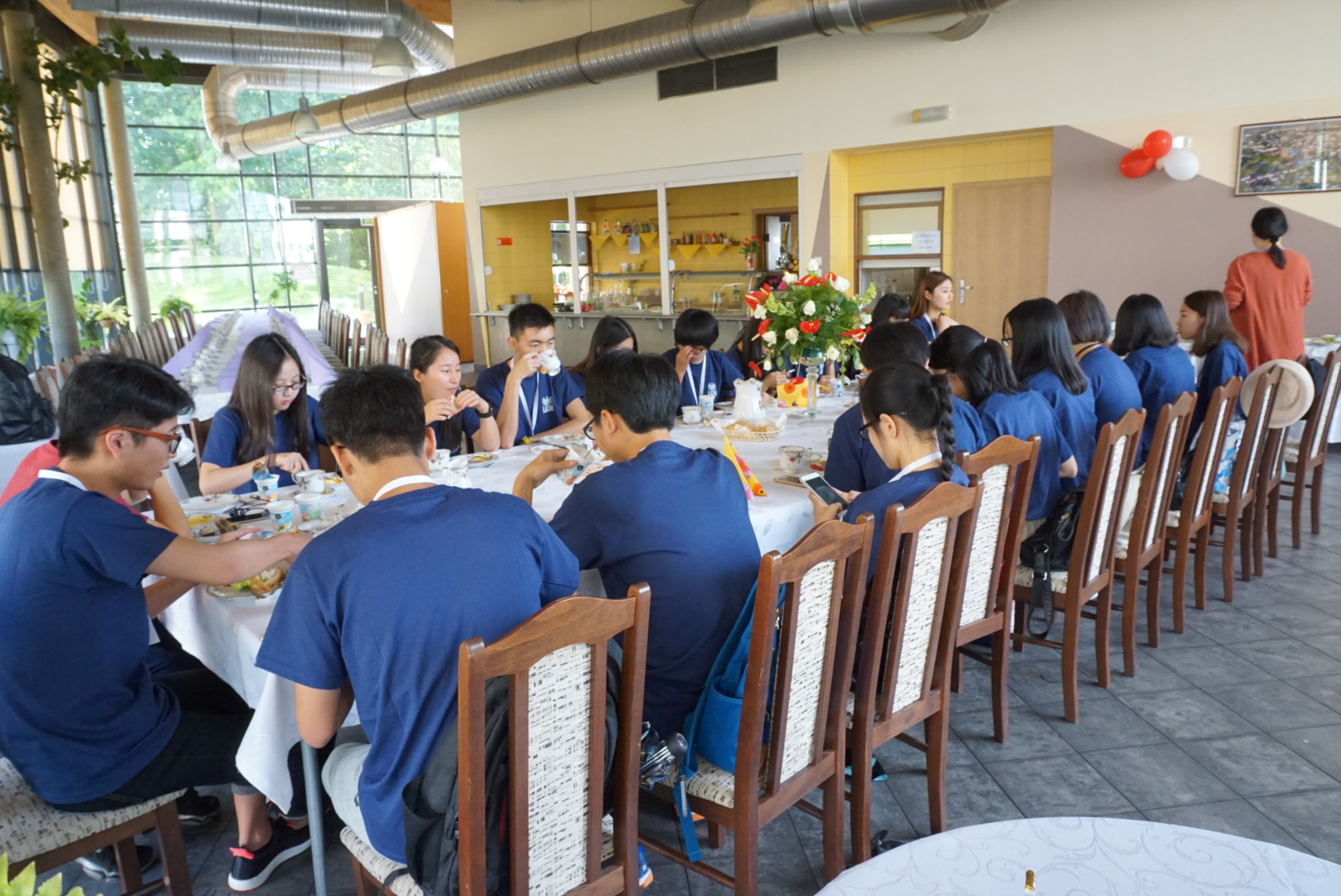 把行李放置在宿舍后,我们开始了来到UAM的是第一顿晚餐。我们一进入餐厅就惊呆了,我们就惊奇地看到欧式餐具和花式餐巾的整齐地摆放在餐坐上,让我们突然想到了简•奥斯汀的《理智与情感》中的聚会场景。典型的欧式风格让电影里一幅幅生动的画面在我脑海中不断浮现。具有浓郁欧式风味的意大利面配番茄汤,芝士鸡肉卷和蒸米饭配凉拌萝卜丝和包菜,让我们着实体验了一把西方人的晚餐。大家愉快地交流着,一一品尝着一道道美食。