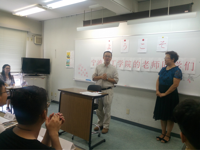 淑德日本语公司董事长钱高莉英女士携全体教师在校门口列队欢迎同学们的到来,并举行了简单而隆重的开学典礼。出席开学典礼的日方代表有:董事长钱高莉英、教务主任泽谷老师、此次教学班班主任木名濑老师、以及事务潘老师和徐老师。董事长对同学们的到来表示热烈欢迎,并希望能在接下来20天的学习中了解日本、收获知识、建立友谊。