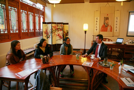 1月11日, 美国索尔兹伯里大学(Salisbury University)副教务长、国际教育部部长布莱恩•斯蒂格勒博士(Dr. Brian Stiegler)代表美国索尔兹伯里大学访问公司,期间,双方就与公司在深入校际合作、加强师生交流和开发新的合作领域等方面进行了讨论。英国威廉集团官网蔡亮副经理、项目负责人姚宇老师、阮征老师和外事秘书肖琪在SC403接待了来宾。