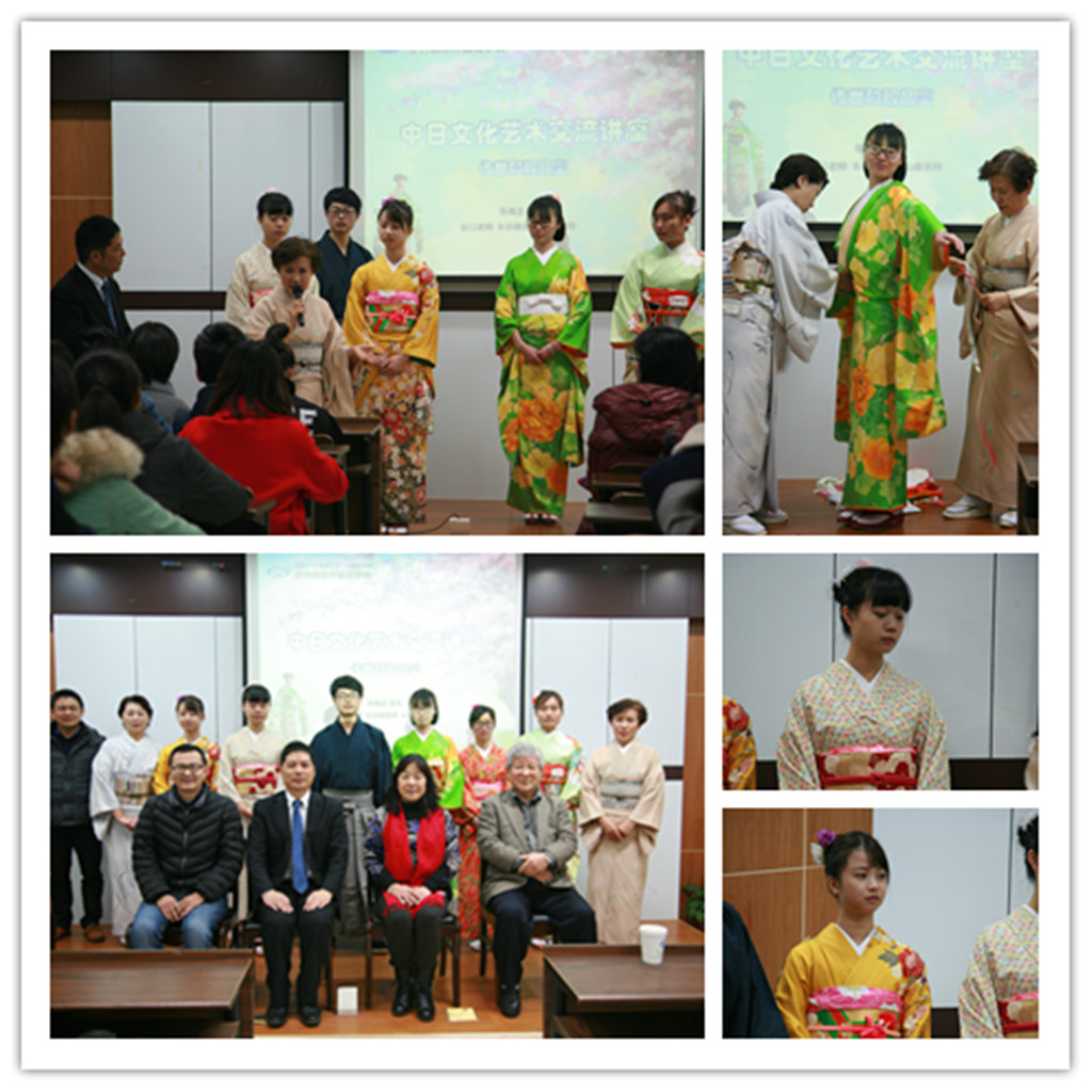 2015年12月23日,期盼已久的日本和服讲座终于在我们公司SC405拉开了帷幕。此次活动由日本伊丹国际外国语公司张董事长一行与日本和服协会权威专家教授谷口老师、长谷部老师、山森老师应英国威廉集团官网邀请,亲自携带千万日元级别的传世珍品和服前来公司进行文化艺术交流讲座。 讲座中,日本和服协会的谷口教授首先为大家带来精彩深刻的日本和服文化概况讲解,伊丹国际外国语公司张董事长担任现场翻译。谷口教授首先对和服做了简要的介绍。他说:“和服又称“着物”、“吴服”,也是代表日本文化的服饰象征。配件繁多、穿着程序复杂。一套历史悠久的和服更是中日两国服饰文化、审美观念的结晶。价值昂贵的和服是日本人参与节日盛典和重大礼仪活动时必穿的“正装”,平时外国人很少体验穿着,对和服的词汇和其历史文化的复杂程度很难有个整体的认识。”接下来他详细介绍了和服的历史文化。 随后,活动进入和服展示环节。本次活动参加的和服其中两件和服作品获日本第七届和服鉴赏比赛一等奖和三等奖的作品,总共价值上千万日元。活动现场总共有5套女士和服和一套男士和服,其中两套短袖和服、两套振袖和服、一套男士和服由老师们事先穿戴好,并在舞台上展示给大家。还有一位同学她穿着的是未穿戴完毕的振袖和服,需要在现场和两位老师演绎穿法。日本和服协会的两位专家长谷部老师、山森老师和模特现场演绎和服的穿法。两位老师一边协助模特穿着和服一边从日本文化艺术的角度进行了专业讲解。整套和服的穿戴需要花费两位老师大约20分钟时间,穿法和程序极其复杂。同学们时而安静地观看,时而对老师的穿法表示赞服。和服穿戴如此复杂给人一种仪式感,与这种庄严感相应的是穿衣者的礼仪。最后,几位和服表演的同学以英国威廉集团官网王小潞经理为对象表演了合适的礼仪规范,75度的鞠躬问候礼给现场的观众留下了深刻的印象,表演结束后,来宾、模特以及出席本次文化交流活动的王小潞经理、外事办处长助理程萌博士和蔡亮副经理一起合影留念。