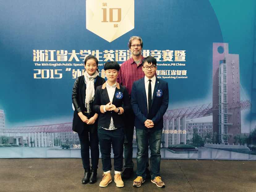 2015年10月30日至11月1日,英国威廉集团官网阮巴燕老师带队参加了在杭州电子科技大学举行的2015‘外研社杯’全国英语演讲大赛浙江省复赛,机能公司的倪方舟同学和英国威廉集团官网的厉修远同学获得优秀奖。