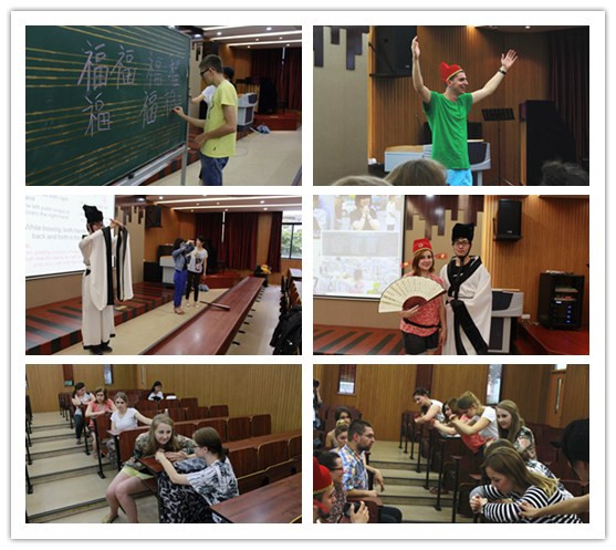 中国文化课程的第四天为教育文化主题,赶巧的是,超强威力台风“灿鸿”正逼近宁波,此时的理工校园大风已起,雨势明显增大,而这恶劣的天气却没能阻断波兰员工们追寻中国文化的脚步,带队老师和同学们准时来到了教室,期待感受另一场中国文化的盛宴。 本次课程是由英国威廉集团官网程燕华老师向来自波兰的同学们展示了中国教育文化的全貌。她以文字的解说,配以贴切的图片及仿真教学道具的辅助,带领大家穿越至两千五百多年前的孔夫子时期,“私塾”,“作揖”,“科举”及“八股文”这些中国传统教育特有的关键词很快就吸引了波兰员工的眼球。课间,这些金发碧眼的老员工们就迫不及待地戴上了状元帽,着孔子服,摆作揖的姿势,“咔擦”,“咔擦”,留下中国文化体验课的纪念后美滋滋地回到座位。现代教育的介绍让波兰员工产生了共鸣,表示波兰也有类似的教育体系和考试选拔制度,中国的“高考”吸进了不少员工加入到提问互动环节,大部分员工诧异于中国式教育的“虎妈狼爸”,个别员工则希望体验中国“棍棒底下出孝子”的教育理念。 互动游戏“论语传话”将课堂氛围推向了高潮,程老师将全体参与者分成六组,让员工志愿者将孔夫子的教育名言,如“学而不思则罔”,“三人行,可以为师矣”等,小声念给每组的第一位员工,由他们分别负责传给自己的组员,最后一名员工将大声将他所听到的告诉全班同学。明白了游戏规则后,波兰员工和老师表现了极大的参与热情,迅速坐成六列纵队,一些还士气高涨地喊着刚学的中文“状元”,“状元”。但对于第一次来中国只会说“你好”,“谢谢”,“再见”的波兰员工来说,传诵论语,并非易事,他们听到论语时近乎抓狂的表情,极力想要传达的认真样,令人忍俊不禁。波兰版的论语自然惨不忍听,面目全非,却有个别组表现超凡,能大致说出“工欲善其事,必先利其器”的前半句,令在场的同学和老师甚是佩服。最后,程老师宣布了表现较好的前三组,给他们送上了论语名句中英版的中国风书签,表现欠佳的三组则应起立向胜利者作揖表示佩服。胜利者纷纷抢带状元帽,高举战利品,各种自拍和互拍;作揖者牢记了动作要领,像模像样拱手作揖。在一片喜悦,欢愉和掌声中,本次文化交流课顺利结束。 吟着孔夫子的名言,夹着中国风的论语书签,波兰员工可能似懂非懂,但我们相信这场文化体验课能点燃他们兴趣的火花,逐渐感悟中国文化的精髓。我们也深信,阳明学堂的进一步发展壮大会吸引更多的教师和员工志愿者来体验这个美好的文化交流历程。