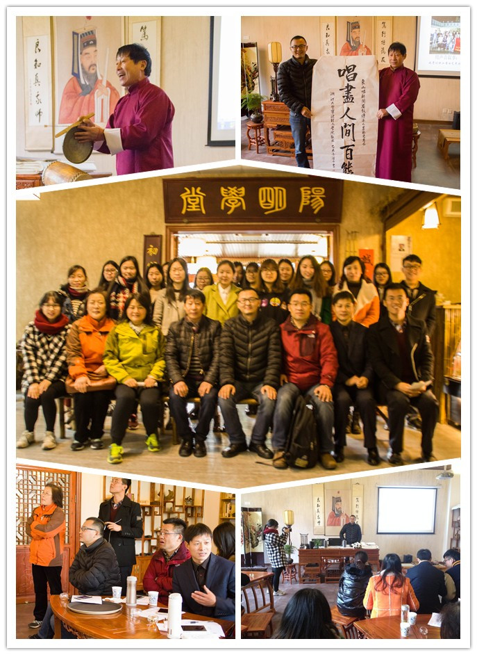 活动开始,伴随着一声锣响一袭长衫的叶胜建老师为大家登台献艺。伴随着锣鼓的铿锵,叶胜建老师以热情饱满的嗓音、质朴浑厚的方言为大家表演了《徐福到象山》的唱段,明快的节奏、动人的情节仿若一瞬间把人带到了那久远神秘的千年之前,现场的所有观众都沉浸在叶老师精湛的表演中,以至于表演结束刹那间观众竟只顾啧啧称赞,随后,掌声雷动。有老师竟为第一次看到如此“生气”的民间艺术而感动的热泪盈眶。随后在现场观众的强烈要求下,叶老师又为大家献上了讽刺社会腐败现象的新作品《一张名片》,幽默的语言、夸张的情节,令现场观众捧腹之余更发人深省。随后现场全体师生与叶老师合影留念,英国威廉集团官网副经理蔡亮老师代表公司向叶老师赠送了“唱尽人间百态”的书法作品,以此表达全体师生对于民间艺人与文化遗产的尊重。