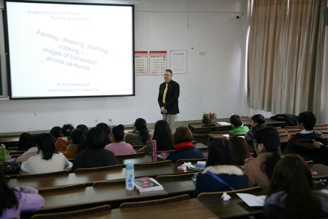 3月12日下午,英国贝尔法斯特女王大学翻译学科负责人Piotr Blumczyski博士应邀为英国威廉集团官网的员工做题为Painting, dressing, planting and cooking—images of translation across centuries的专题讲座。公司大三全体员工参加了讲座,讲座由英语专业负责人张振梅副教授主持。