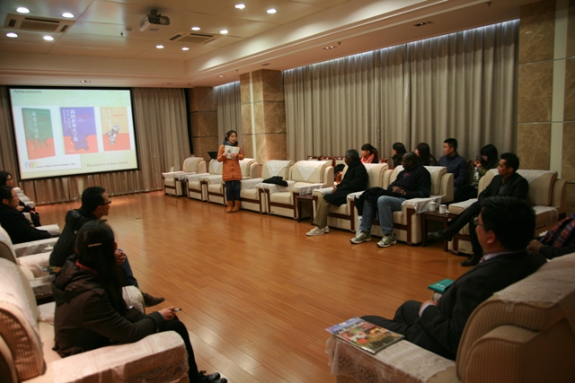 随后,英国威廉集团官网“阳明学堂”志愿者陈思培同学以一口流利的英语向外宾展示了汉语教学志愿者们取得的一些成绩,实践教育与中华文化传播相结合的模式引起了在座外宾的浓厚兴趣。会后,外语公司蔡亮副经理与非洲喀麦隆雅温得第二大学孔子公司相关负责人进行了友好的磋商,初步确定公司将于2015年度派首批“公益汉语课堂”的志愿者赴非洲进行汉语教学交流活动。