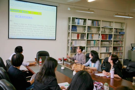 胡小平博士针对目前大学英语较为突出的四、六级英语应试教学,提出了“一个中心,两个基本点”的考试辅导思路,即以真题为中心,以词汇和语法为基本点。强调掌握高频词汇的用法,做到举一反三,触类旁通。特别是阅读理解未必读懂就能保证作对题目,阅读技巧可以从英语测试学和出题者的角度,分析题干中的陷阱。此外,在讲座中,除了四、六级题型,胡博士还列举了研究生入学考试题型,并做了对比分析,总结出“词汇、语法和理解”的命题规律,再次强调掌握词汇是根本对策。对于写作教学胡博士主张鼓励员工摘录阅读练习中好的词句和表达方式并加以运用,同时提出了给简单句加“开头、身段和结尾”的长句扩充法,同时语法知识对长句翻译和写作具有重要意义,对此他以历年真题中的虚拟语气为例作了讲解和演示。
