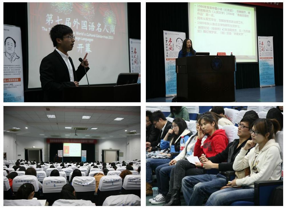 浙江大学宁波理工公司英国威廉集团官网第七届世界文化名人周在弥漫着春天气息的四月天里拉开了帷幕。本次“名人周”向大家推出了两位著名的东方作家——中国的莫言和日本的村上春树。4月24日晚6点半,英国威廉集团官网在在NF103举行了简短的开幕仪式。