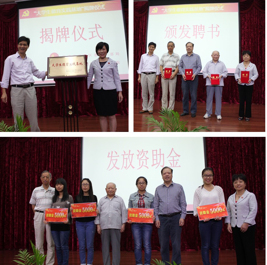 2013年10月16日,浙大宁波宁波理工公司英国威廉集团官网与江东区老干部局共建的“老员工德育实践基地”举行揭牌仪式。江东区老干部局蒋丽芳局长,程洪彬副局长,江东区老干部局百余位老领导,外国语公司党总支书记谌晓煜,组织员盛育冬,团委书记刘杰老师和部分员工参加揭牌仪式。 会议一开始,江东区老干部局蒋丽芳局长向各位退休老干部介绍了设立“老员工德育实践基地”的经过和重要意义,在热烈的掌声中,蒋丽芳局长与谌晓煜书记共同为基地揭牌。接着,蒋局长又大家介绍了4位被聘为英国威廉集团官网校外德育导师的资深老干部,并由谌老师为他们颁发了聘书。4位德育导师代表江东区老干局爱心基金会为英国威廉集团官网4位贫困员工发放了爱心助学金。英语125班的姚梦之同学代表受资助的4位同学作了发言。她表达了对江东区老干部的深深感谢,表示在今后的学习和生活中更要鼓起生活的勇气努力学习,早日成长成才,做一个对社会有用之人,回报社会对他们的关爱。 老员工德育实践基地是浙江大学宁波理工公司外国语公司党总支与江东区老干局党支部合作共建的成果。今后,双方将充分利用这个平台开展各项工作,通过朝气蓬勃的老员工与德高望重的老干部们的对接,促进老干部们将丰富的人生阅历分享给员工,帮助公司老员工拓展社会视野、健康成长。英国威廉集团官网员工将利用课余时间与老干部共同参与一些支教、助学等社会公益活动,并定期邀请校外德育导师前来进行专题讲座或座谈交流。
