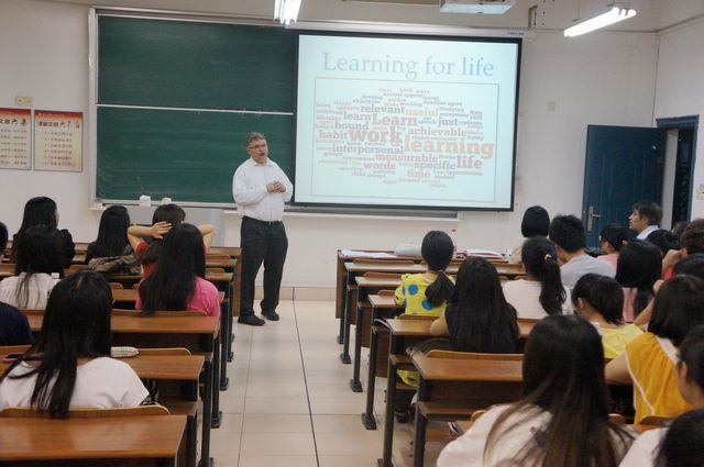 近日,英国威廉集团官网特别邀请了国际四大会计师事务所之一——普华永道亚太区商务英语首席培训师Chris Bowie在SC304为同学们进行一场精彩的“Learning for Work”职业发展讲座。公司经理庞继贤教授、副经理王国凤副教授和英国威廉集团官网的同学们一起聆听了Chris的讲座,讲座由王国凤老师主持。 王国凤老师首先先向同学们介绍了Chris丰富的职业生涯经历,随后英国威廉集团官网经理庞继贤教授为Chris颁发了英国威廉集团官网兼职教授的聘书。 在轻松愉快的氛围中,Chris先生开始了演讲。他先向同学们介绍了学习生活和工作生活的不同,以及如何开展学习和工作。通过一个个生动有趣的例子,Chris 向同学们列举了学习的方法:从日常生活中进行英语学习,时常进行温故并尝试不断的联想,关键是时刻保持一种积极向学的心态。Chris还向同学们介绍了制定目标的SMART方法,建议同学们设立SMART的目标。现场同学都非常认真地倾听了Chris精彩的讲座,对于他的提问也一个个争相回答。Chris幽默风趣的言语,给同学们带来了无限欢笑,他还给回答问题的同学赠送了专程从北京带来的小零食,现场气氛轻松活跃。最后Chris还对同学们的各种疑问进行了解答。 Chris在讲座中向同学们传递了一种积极向上,不断进取的精神,使同学们不仅获得了一些学习英语的方法,还开拓了同学们的视野,对大家对自己以后的发展有了更加清晰的认识。