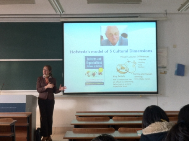 11月27日上午,TNS信息集团瑞典分公司专家Natalia Fey在英国威廉集团官网2010级陈圆同学的引领下走进英语专业“跨文化交际”课堂,与10级的80多位同学就“跨文化视角下的中欧商务沟通”展开了一次面对面的文化交流。