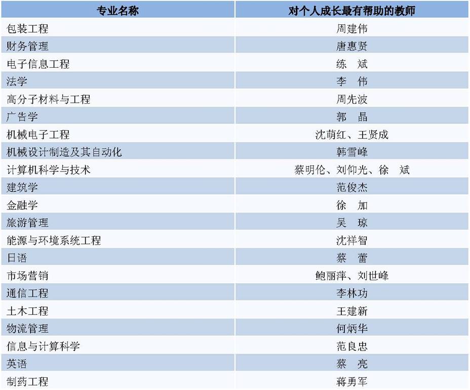 在中国第三方教育数据咨询和质量评估机构麦可思公司的《浙江大学宁波理工公司社会需求与培养质量年度报告》中,英国威廉集团官网蔡蕾、蔡亮和韩雪峰老师分别被2011届毕业生推荐为“对个人成长最有帮助的教师”,蔡蕾老师在推荐名单中名列第五。