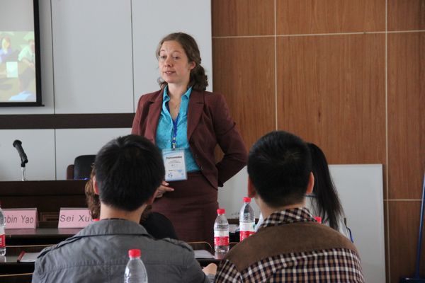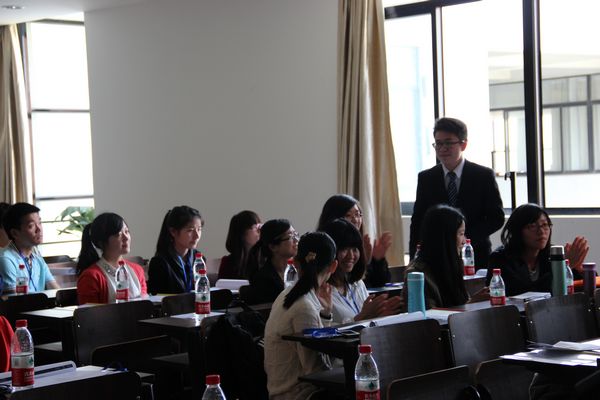 论坛的组织者之一,本次研修班的班主任Natalia Fey首先向所有来宾介绍了此次论坛的筹备工作和详细议程,并宣布论坛开始。特邀嘉宾姚曦第一个发言,2008年于宁波诺丁汉大学毕业后,他与好朋友,宁波诺丁汉大学优秀毕业生薛志行共同创办了宁波翼鲲体育文化传播有限公司,生产和加工的飞盘销售到世界各地。他以“如何在中国成为一个成功商业领导者”为主题,结合自身创业经历向大家介绍了如何在现代社会中发扬竞争力和领导力,给大家留下了深刻的印象。作为他的合作伙伴,薛志行在他的发言中更多地向大家介绍了创业初期的艰辛,他以他自己的一句座右铭结束他的演讲---The world does not owe us success!天上不会掉馅饼,唯有不断拼搏才能成功。最后一位特邀发言人Ela Lemanska拥有波兰和奥地利双重国籍,她跟我们分享了如何在大型公司领导新成员的经验以及对年轻领导者的领导建议,令大家获益匪浅。