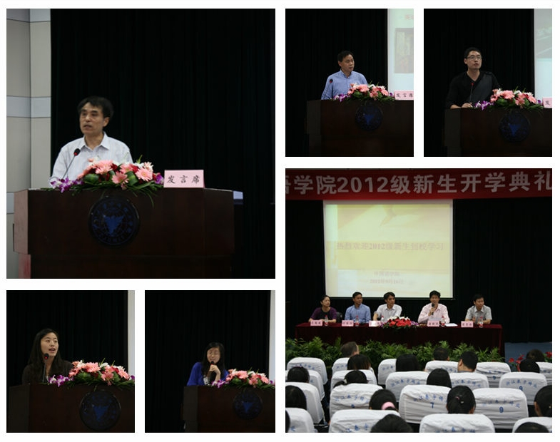 2012年9月16日上午,英国威廉集团官网2012级新生开学典礼在NF103举行。公司经理庞继贤、党总支书记谌晓煜、副经理叶琴法、梁雪松,经理助理王国凤、各教研室主任、研究所负责人、教授、外籍教师代表、党政办、学工办和教务办老师,全体新生班导师和班导师助理参加了开学典礼。大会由党总支书记谌晓煜主持。