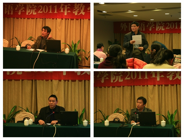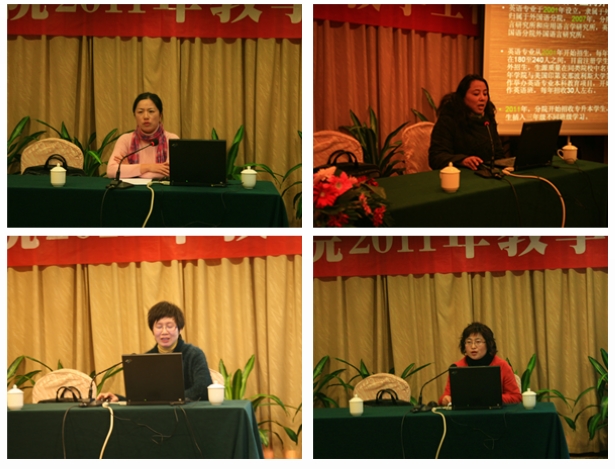 首先,外国语言研究所副所长张振梅、杨黎霞首先就英语、日语专业学士学位授予资格迎评工作作了总结,对这两个专业近四年来所取得的成绩进行了总结、梳理,应用语言研究所副所长孙广平对就本学期大学英语教学工作情况向大会进行了汇报。