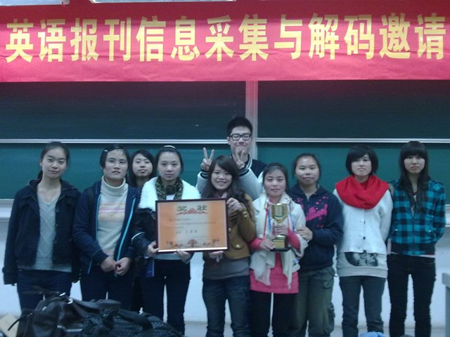 近日,从第五届英语报刊信息采集与解码能力邀请赛传来喜讯,竞赛决赛于2010年11月28日在浙江大学紫金港校区举行,本届大赛共有13支参赛代表队,其中包括浙江大学、浙江师范大学、浙江财经大学、杭州师范大学、浙江工商大学、浙江农林大学、浙江理工大学等强队。经过激烈的竞争,公司选手获得团体三等奖,叶蒙双、夏晓丽、闻人姚安、于佳秋4位同学获得个人三等奖,潘越等6位同学获得入围奖。外语分院孙娟和宋岩两位老师获得竞赛最佳组织奖。 英语报刊信息采集与解码能力邀请赛是由中国外语教学辅导期刊质量监测网络和浙江大学外语教学传媒研究所主办,旨在鼓励在校老员工广泛接触英语报刊和非课本读物,提高信息采集和解码能力,推动大学英语素质教育的高层次学科竞赛。第五届英语报刊信息采集与解码能力邀请赛由中国外语教辅类期刊质量监测网络命题。该比赛参赛选手均为在校的非英语专业本科生。 在本次竞赛中,我们的员工有机会与省内一流高校员工同台竞技,这大大激发了他们英语学习的热情,同时也增强了信心。通过本次比赛,员工获得更多的机会接触和利用国内优秀报纸和期刊,有助于培养良好的阅读习惯,转被动学习为主动求知。同时,随着竞赛的开展,校园内英语学习的良好气氛得以推进,促使知识学习与个人素质的和谐发展,有利于推动公司学风建设。