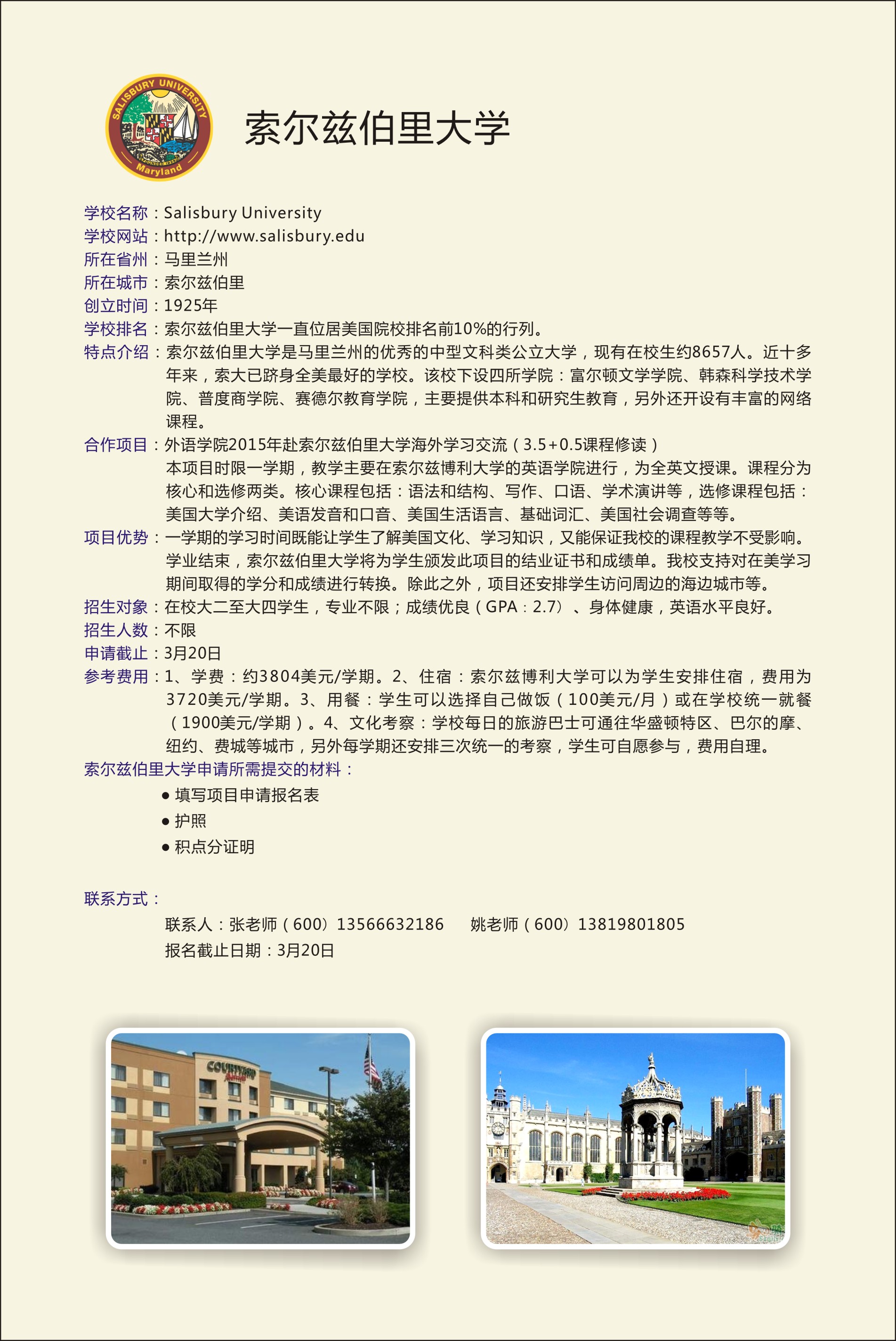 11月21日上午,美国索尔兹伯里大学(Salisbury University)英语语言公司经理宋红专教授到访公司英国威廉集团官网。英国威廉集团官网经理王小潞教授、美国索尔索尔兹伯里大学项目负责人张腮云、姚宇老师在英国威廉集团官网会议室SC403与宋教授进行了会谈。 会上,双方探讨了开展暑期小学期ISAP项目(Intensive Study Abroad Program)、一学期访问生LEAP项目(Language Experience in America Program)、3+1跨学科双学位项目、TESOL硕士项目以及团队交流等事宜。会后,公司外事处处长助理程萌博士在会后与宋教授就与美国索尔兹伯里大学的校际间交流的事宜进行了交流。双方确定将签署校际合作交流协议,以进一步增强双方的交流和互访。 下午,宋教授在SB318向公司2014级商务英语专业的员工进行了项目推介,详细介绍了索尔兹伯里大学的情况,包括该校的优势、专业、入学要求及住宿条件等,回答了同学们的相关问题。宋教授的介绍赢得了热烈的反响,一些同学表现出了强烈兴趣。 索尔兹伯里大学地处美国东海岸马里兰州(Maryland),位于美国首府华盛顿特区南部约1小时的车程,地理位置优越。索尔兹伯里市环境优美,该大学属于美国公立院校的佼佼者,全国排位一直在本科院校前10%的行列、吉普林(Kiplinger)个人理财杂志“最有价值公立大学”100强。该校商公司受美国著名食品公司普度(Perdue)公司赞助,为以工商业著称的马里兰州顶尖的商公司之一。 据悉,两校有望在2015年春季开展一学期访问生LEAP项目等相关合作。