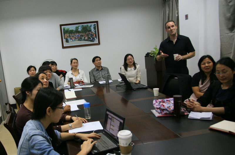 在讨论与交流环节,外语老师们对Adam Pease的研究都表示出浓厚的兴趣,一些老师也以自己目前的研究方向与Adam Pease进行了互动,希望能找到更多的合作研究机会,为自身的科研学术水平发展打开更广的道路。