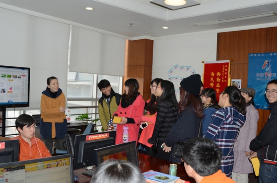 12月13日,浙江大学宁波理工公司NIT POST英文报的员工记者们在指导教师丁旭老师的带领下走进了宁波日报社集团,参观了中国宁波网旗下栏目《对话》直播间并深入了解了“宁波民生e点通”网站的整体运营方式。此次参观为员工记者提供了一个宝贵的机会,让他们得以走进媒体人,走近媒体业。 在此次参观中,员工记者们与“宁波民生e点通”的工作人员进行了“亲密接触”。使员工记者们对媒体也有了初步的了解。一进入工作间,便看到工作人员们都在认真的进行网站的制作和编辑。有的在制作网站的小封面,有的正在与市民进行交流,还有的在进行视频的后期处理。工作人员通过大屏幕向员工记者们介绍了网站的组成部分与特色之处。该网站主要以民众的生活为主体,报道市民日常发生的事情与遇到的问题。当然贴近群众同时也关心国家大事。 “宁波民生e点通”搭建的初衷便是借中国宁波网推进文化体制改革之机搭建的一个倾听民声、反映民意、贴近民生的平台。事实证明,在网站搭建不到2个月的时间里,市民的各类民生问题就得到了解决,使得网站真正起到一个舆论监督的作用,并因此受到了民众的一致好评。 在参观过程中,冯磊主任说道:“为了方便市民及时了解宁波的民生事务,首页的编辑早上7点半就来到办公室,以便随时更新每日消息和头条新闻,将宁波的大事要事第一时间呈现给民众。”除此之外,陈冬冬主任介绍说:“为了保证问题能得到及时解决,网站工作人员会对政府各部门实施考评制度。政府部门对于网友所提出的问题,必须在24小时内回复,在3-5天内提出解决方案。”这一制度帮助网站更好地起到舆论监督作用,真正的做到为民服务,在参观过程中,员工记者周敏敏问道关于网站后期推广的问题,陈主任回答道:“我们的网站要率先借助新兴网络媒体微博、微信等在老员工这一优势群体中推广,之后也会在社会中进一步推广。” 通过此次参观,记者们感触颇多,不仅真正了解了传播媒体的运作方式,还感受到了媒体在监督政府,为民办事方面蕴藏着的巨大的力量。有这样的网站为民办事,为民服务,相信百姓生活更安心!宁波明天会更好!