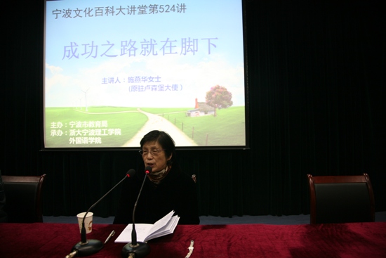 如果说人生就像一本书,那么她便是一本波澜跌宕扣人心灵的小说。她说个人的成功是与国家命运紧密相连的;她还说个人的成功是在无数的挫折中奋进以及不同的错误中反省所造就的;她说每个人都渴望成功,但万不可好高骛远,唯有脚踏实地,才能真正达到成功的彼岸。她便是中国外交部英文专家、中国英语翻译协会副会长、外交部原驻卢森堡大使——施燕华。 3月10日晚,公司携手宁波市文化百科大讲堂邀请施燕华女士莅临公司,为公司学子开展《成功之路就在脚下》的主题讲座。出席当天讲座的有外国语公司党总支书记谌晓煜老师、宁波市文化百科大讲堂盛育东老师以及公司学工办主任方芳老师等,英国威廉集团官网2011级、13级全体同学参加了讲座,此外还有来自其他分院的旁听的员工,整个报告厅座无虚席,热情涌动,表达了员工对于施女士讲座的期待之情。 讲座开始前,方芳老师首先介绍了施燕华女士的人生履历,从她18岁才开始接触英文一直到后来担任周恩来、邓小平等国家领导人的随行翻译秘书,施燕华女士的“翻译逆袭”立即牢牢吸引了现场同学们的注意力。他们用最热烈的掌声表达了对施燕华女士的欢迎。 施燕华女士首先向举办这场讲座的宁波市文化大讲堂以及英国威廉集团官网表示了感谢,随后即向在场师生抛出了这样一个问题:“什么是成功?”。同学们纷纷表达了自己的看法:有人说成功就是“出名,要光宗耀祖”;有人说,拥有一个“幸福的家庭”便是成功;还有人说只有“治国平天下,才是真正的成功者所为”。同学们个性多彩的回答,缓和了原本严肃的会场气氛。在接下来的时间里,施燕华和在场的师生一起分享了她的人生经历,从小家境贫困,父亲在外打工,母亲文盲,她在家中9子中排行老六。窘困的现实使她早早成熟,小小年纪便立志要努力读书、学有所长,做一个对家庭有用的人,对社会有用的人。18岁开始学习英文,刚开始进入外交部也只是做一些文字翻译、文稿修改等事务性工作,但施女士并没有就此止步,而是充分抓住任何可能令自己学习提升的机会:向部里的老同志请教,经常琢磨国家领导人的语言风格,甚至在平时洗衣服的时候也一边听新闻联播一边进行翻译尝试。机遇总是会垂青有准备的人,最终在一次外事翻译中因一个翻译员过度紧张,临时决定由她担任周总理的随行翻译。施燕华女士坦言自己当时有太多的紧张与兴奋,但更多的是那份沉静与自信,最终她圆满完成了翻译任务。总理会后的那句“不错,好好努力!”对她是莫大的鼓励与动力。在讲座中施女士也一直讲到:人的成功是多方面因素,与社会形势相关联但更与个人的努力奋斗密切相关。 演讲中,施燕华女士还回忆了在中美建交前期他与丈夫吴建民先生一起赴联合国工作,与美国前国家安全事务助理基辛格秘密会晤的情形,为同学们生动再现了上个世纪东西两个大国之间政治博弈的波诡云谲。此外她还与同学们分享了在外事翻译中的一些趣事,例如在国事宴会中误把“烤鸭”翻译成“受伤的鸭子”;在跟随领导人协调军事问题的时候,第一次因为一些军舰性能指标等专业名词的翻译而完全卡壳,后来为了迅速了解各种军事武器专业名词的翻译,愣是硬生生啃下了厚厚的一本《简氏军事词典》。 讲座最后,施燕华女士还与同学开展了积极的互动,同学们都踊跃举手发言,把现场气氛再次引向高潮。施燕华女士非常耐心的解答了师生们提出的问题,这让老师和同学们都受益匪浅。讲座结束以后,公司师生们一起欢送施燕华老师离场。本次讲座使同学们充分领略到了外语成就人生,语言改变世界的重要意义,也进一步激发了同学们认真开展专业学习的热情。