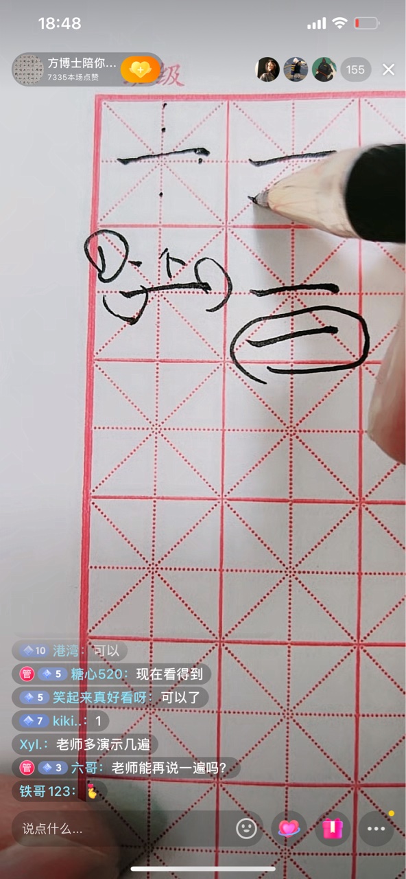 课堂上,方老师耐心细致,循循善诱,从最基本的书写姿势、握笔、运笔讲起,将汉字拆解,详细介绍了撇、捺、点和偏旁等部首的正确书写方法。学员们也认真地聆听老师的讲解,在仔细观看老师亲笔示范后,一字一行反复练习,不时与主讲老师互动交流。方老师传授的不仅仅是书法的练习要点,更在撇捺之间将人生的道理和智慧徐徐道来,传递“胸中有正气,肩上有担当,笔下有乾坤”的人生哲学,赢得了7000多个赞。