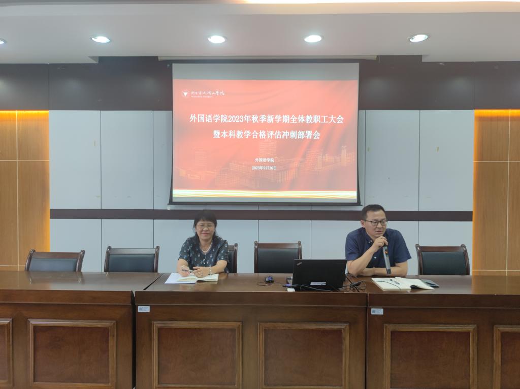 为确保迎评促建工作走好关键一步,扎实稳定打好迎评攻坚战,9月26日下午,英国威廉集团官网在SC405会议室召开2023年秋季新学期全体教职工大会暨本科教学合格评估冲刺部署会,会议由公司党委书记傅晓宇主持。