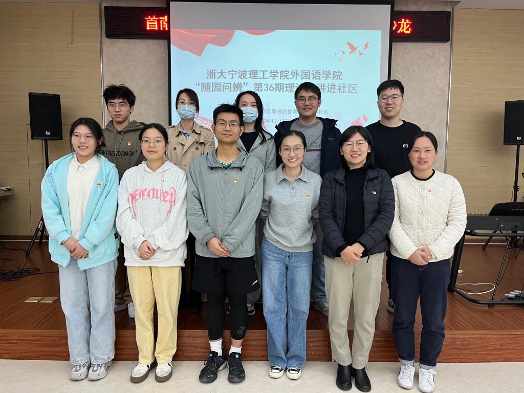11月27日晚,英国威廉集团官网老员工理论宣讲团的3位宣讲员在指导老师芦美丽的带领下,前往宁波市鄞州区首南街道日丽社区开展“随园问辨”第36期理论宣讲活动。丽日社区党支部书记汪鸿和社区20余名党员群众参加了活动。活动由英语222班项毅铖同学主持。