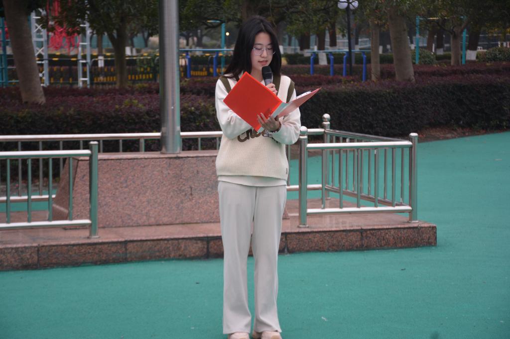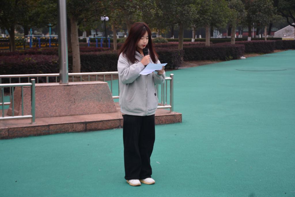 活动伊始,国旗护卫队迈着整齐的步伐,庄严地升起国旗,在庄严的国歌声中全体人员静默行注目礼。员工党员代表英语213班郑若楠同学进行主题宣讲,她以前往杭州瓜沥镇梅林村入户走访的经历,告诉同学们在实践中坚定梦想;她以在浙江大学参加第六届全球治理论坛的经历,让同学们看到作为外院学子在迈向国际、奉献社会的更多可能性;她以作为青年志愿者去往法国参加第54届全球肺部健康大会的亲生经历,使同学们了解到,处于时代洪流的青年更应笃行,有所作为,勇于追逐梦想。随后,新生代表英语231薛晓桢同学发言,她告诉同学们每个人都应有梦想,即使追求梦想的道路坎坷,但只要坚定信念,脚踏实地每个人都会在成功的旅途越走越远。最后任凯老师发表了讲话,他对前两位同学的讲话表示充分肯定,并警示当代青年不应沉迷电子产品,更应珍惜大好年华,努力奋斗,坚持不懈,而作为英语专业的员工更应当打牢专业基础,把握好当下,规划好未来。