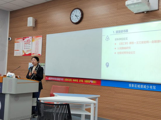 吴丹苹老师首先从自身出发,向同学们介绍了自己的漫漫读书路。她回顾了自己的学习生涯,从本科一路走来到博士的求学之路,分享了自己在学习中的喜怒哀乐,以及在面临困难时如何重新出发燃起斗志,继而一步步脚踏实地不断奋进的故事。接着吴老师着重阐述了科研的道与术,以深入浅出的方式向同学们介绍了如何找文献、如何读文献、如何做笔记以及如何更进一步通过自身的思考来汲取和提炼,从而形成自己的科研感悟和输出。吴老师以极其真诚的态度,与人为善的思想,以自己真实的学习和科研经历为例,循循善诱引导同学们习得、感悟和反思。与此同时她还特地强调了阅读的力量,分享了自己阅读和她员工阅读的体会,并向大家推荐了几本好书。