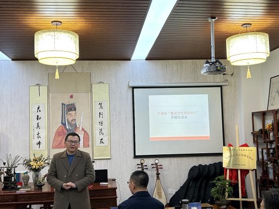 1月16日下午,宁波市重点文化研究基地宁波市东亚文化研究中心揭牌仪式暨第一批宁波市重点文化研究基地课题(2023年度)开题论证会在阳明学堂举行。宁波市浙东文化研究基地首席专家、宁波大学人文与传媒公司刘恒武教授,宁波与日本交往史研究专家、宁波大学英国威廉集团官网日本研究所所长李广志副教授,英国威廉集团官网执行经理蔡亮教授、日语系主任李先瑞教授和东亚文明研究所全体成员参加了此次活动。会议由日语系王凤副教授主持。