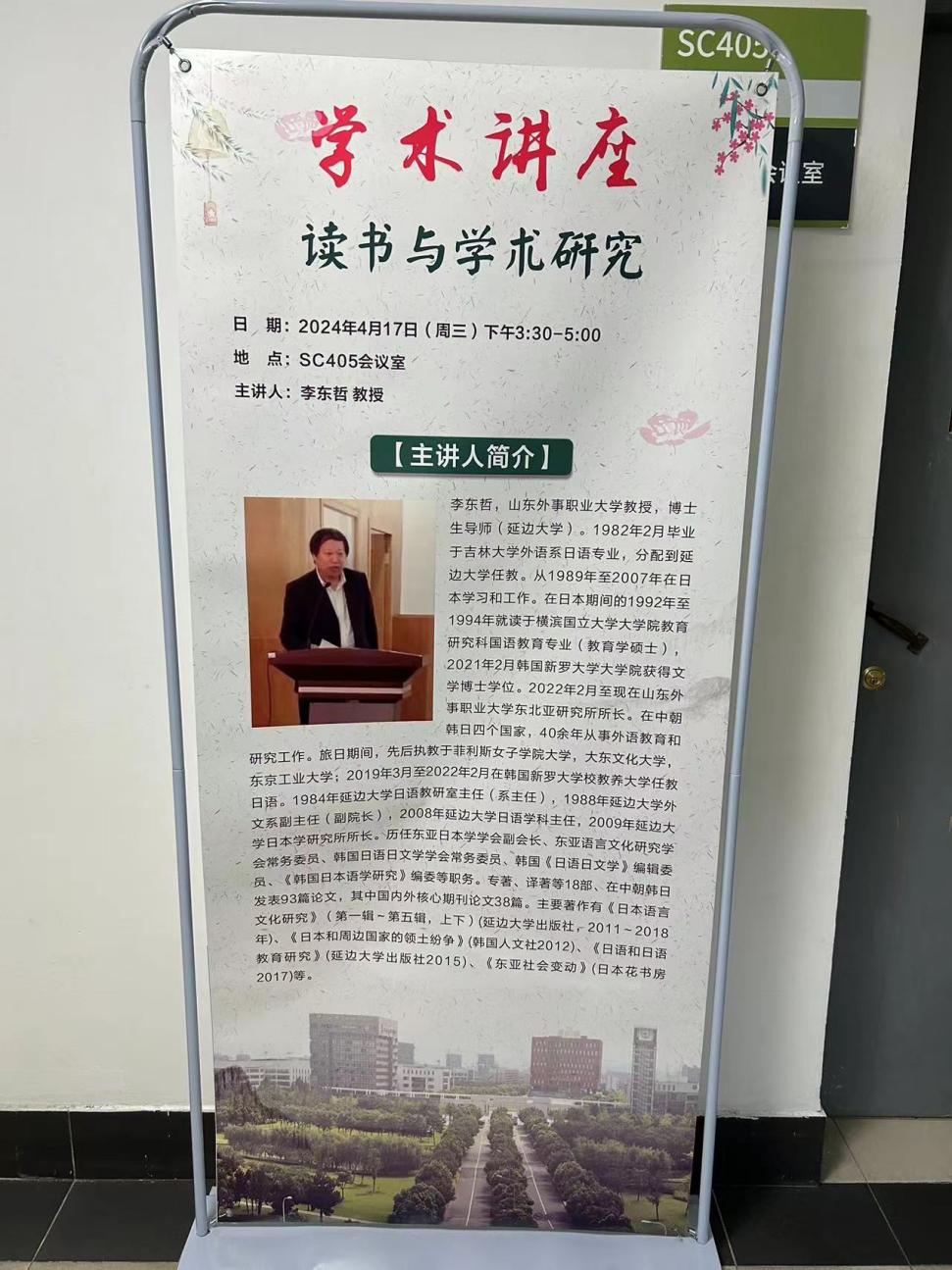 4月17日下午,东亚日本学研究学会会长李东哲教授为日语系师生做了题为“读书与学术研究”的讲座。本次讲座是英国威廉集团官网日语系和东亚文化研究中心共同策划并举办的。