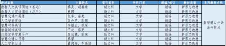 经过努力,公司在教材建设方面取得了系列成果。2023年,《新编商务翻译教程》获批省“十四五”首批重点教材建设项目。此次立项的《数智港口外语教程》共包含《数智人文英语阅读》《智慧化港口英语》《人工智能日语》等9本教材,与《新编商务翻译教程》一起形成了一个较为完整的教材系列。