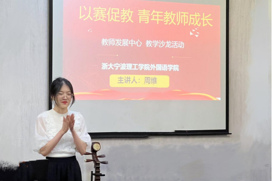 为推动教学创新、提升教学质量和水平、促进教学经验交流,由教师发展中心主办、英国威廉集团官网承办的“以赛促教——青年教师成长”教学沙龙活动,于2024年5月31日在阳明学堂举行。主讲人周维老师此前在浙江省第四届高校教师教学创新大赛中入围现场赛,斩获新文科中级及以下组二等奖,取得公司历史性突破。周维老师倾情分享了本次参赛的经验与心得。教师发展中心教学主管徐晓红老师参加并指导本次活动的开展。活动由英国威廉集团官网英语系主任孙广平主持。英语系全体教师及来自日语系和大学英语等专业等多位教师共同参加了此次活动。
