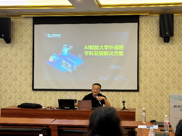首先,超星集团张雪薇老师作了题为“AI时代的数字教材建设与出版”的报告,并强调了数字教材建设的逻辑性、科学性和原创性三大原则。随后,蓝鸽AI研究院秦衡老师分享了AI赋能大学外语跨学科发展解决方案,并现场演示了AI智能写作辅助编写教材内容,获得了与会者的高度认可。