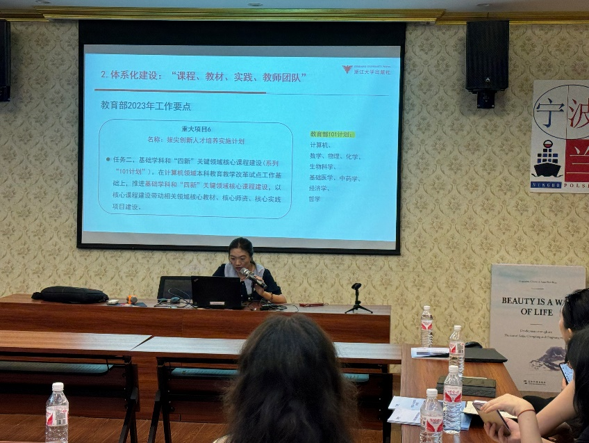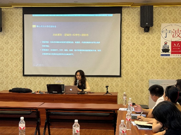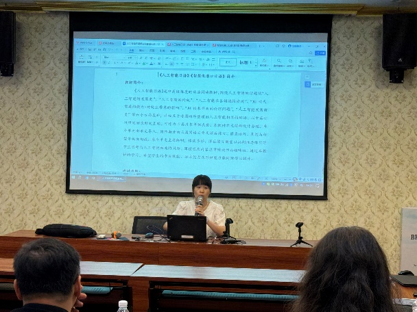接着大学英语部的王欢老师、英语专业的廖佳栋老师和日语专业的蔡蕾老师分别介绍了《智慧化港口外语教程》《丝路营销智慧写作》《数智人文英语阅读》《人工智能日语》《智慧化港口日语》等系列教材的编写原则,选材情况和教材特色等情况。