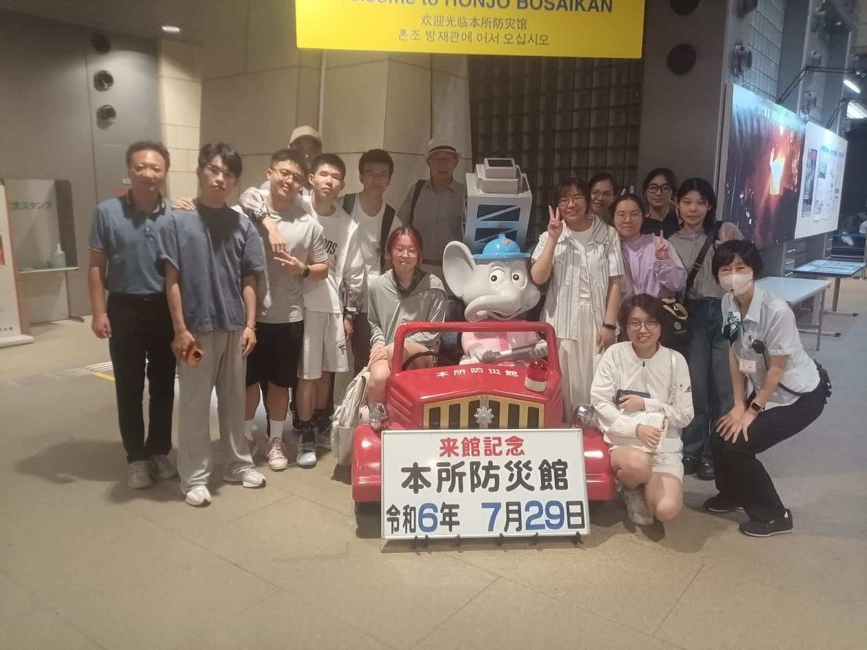 在此期间,研学团成员们还有幸参观了当地的消防厅。这是一次难得的深入了解日本公共安全体系与应急响应机制的机会。同学们们在工作人员的带领下,参观并体验了高科技还原台风来临时的暴风雨、地震发生时的震感强度,了解了消防员们日常的工作内容、专业技能以及面对紧急情况时的高效应对策略。此外,同学们还参与了模拟火灾逃生演练,亲身体验了火灾现场的紧张与危险,学习了正确的自救与互救方法,通过高科技模拟的灾害体验,看到了科技与文化的交汇点。