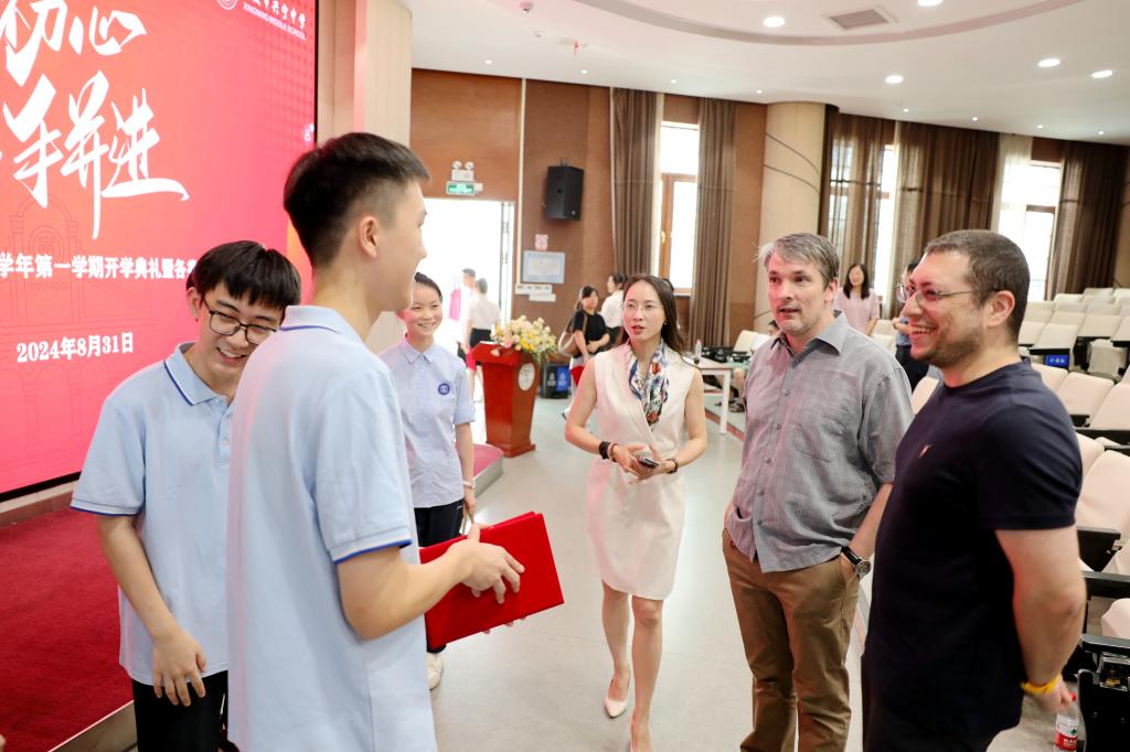 签约仪式过后,公司外教Terence Noel Needham博士和Marcos Gutierrez Alves博士与宁波中学员工就英语学习、国际教育理解等方面进行了交流。