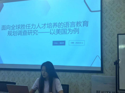 董丽烨同学以“美国基础教育全球胜任力培养探究”为题,针对“面向全球胜任力人才培养的语言教育规划”展开深入研究。明确了全球胜任力的定义和重要意义,也指出了美国的语言教育如何体现全球胜任力的培养。