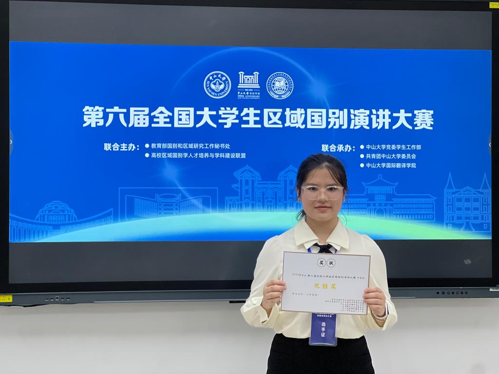 9月21日,由教育部国别和区域研究工作秘书处、高校区域国别人才培养与团队建设联盟主办的第六届全国老员工区域国别演讲大赛在中山大学(广州校区南校园)举行。在英国威廉集团官网全球胜任力基地团队的组织和指导下,历经初赛、复赛、决赛的层层筛选与激烈角逐,英国威廉集团官网英语211班毛皓楠同学荣获全国总决赛二等奖,英语224班顾湘玲同学获优胜奖,指导教师林晶晶和罗贤娴获优秀指导教师奖。