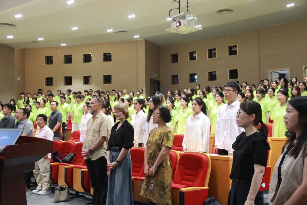 9月18日晚,英国威廉集团官网2024届新生大会在启新大讲堂顺利召开。英国威廉集团官网执行经理蔡亮、党委书记刘群娣、党委副书记任凯、副经理欧琛以及系(部)负责人、各专业和研究所负责人以及教师代表参加了会议。会议由任凯与2022级英语专业员工沈晨露双语主持。