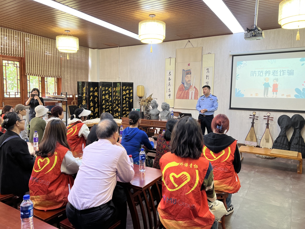 活动设计三个环节:听一堂大学课程、吃一次大学食堂、逛一圈大公司园。鄞州公安分局文华派出所教导员张众力警官,公司三叶草生命关怀志愿服务队成员、日语221班常瀛文和杨群同学通过生动的案例分析和互动问答为社区居民带来了一堂精彩又实用的反诈课,老年居民们不仅了解了诈骗的危害性,还学会了如何保护自己的财产安全。
