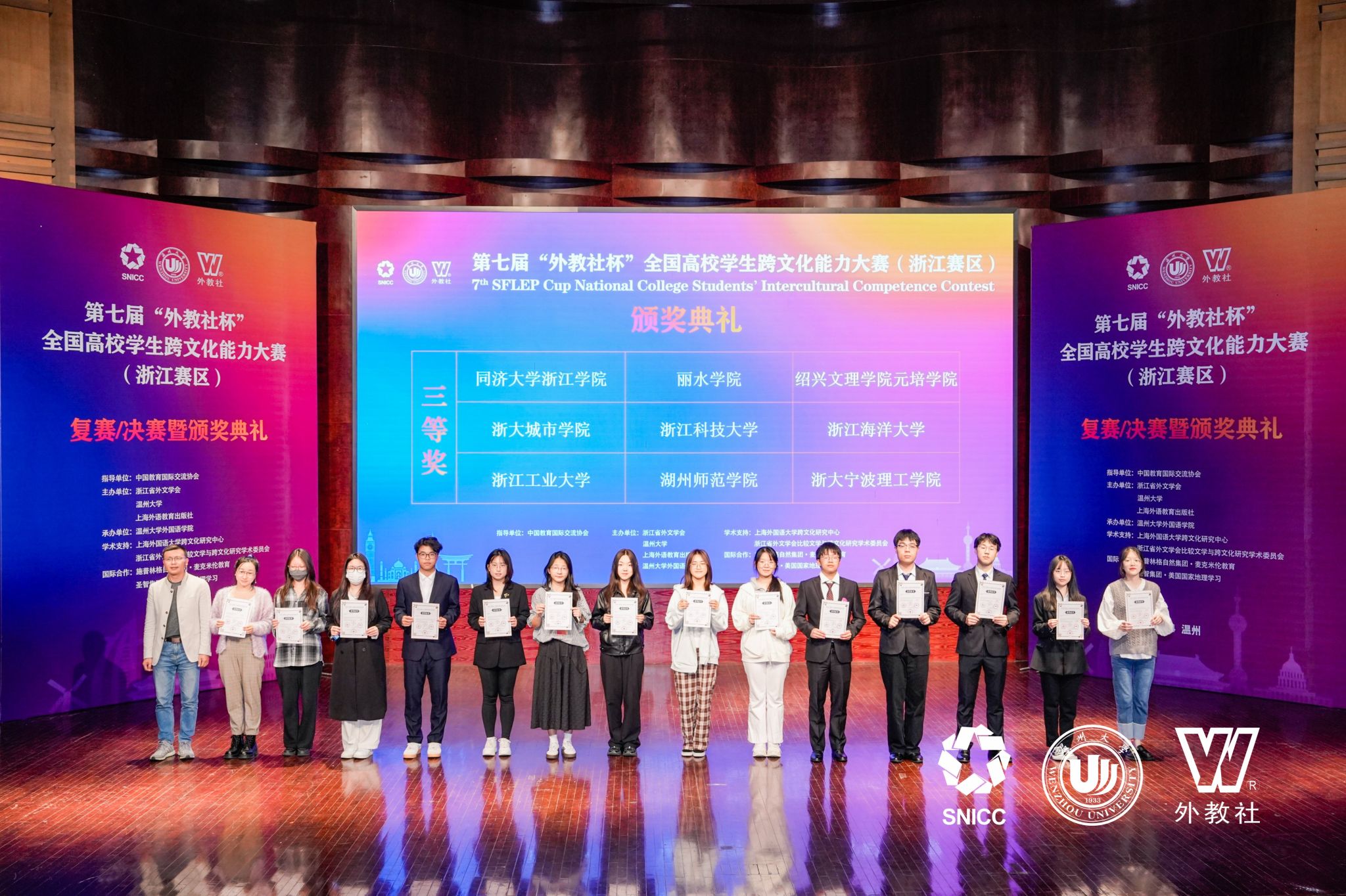 2024年11月16日至17日,第七届“外教社杯”国高校员工跨文化能力大赛(浙江赛区)在温州大学成功举行。由公司英语专业张忆天、日语专业朱宇豪以及国贸专业丁林叶组成的员工团队,在英国威廉集团官网教师的指导与带领下,精心备赛、奋力拼搏,与来自全省高校的29支队伍同台竞技,展现了当代青年的跨文化交流能力与风采,最终摘得省级三等奖荣誉。