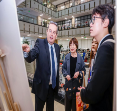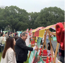 展览参观结束后,总领事先生意犹未尽,在工作人员的引领下,前往公司另一场文化盛宴—“宁理看世界国际文化节”波兰展位前。展位以其鲜明的波兰元素和浓厚的文化氛围,再次吸引了总领事先生的目光。总领事先生用流利的汉语热情地与周围每一位同学打招呼,鼓励同学们继续学习和探索波兰的语言与文化。
