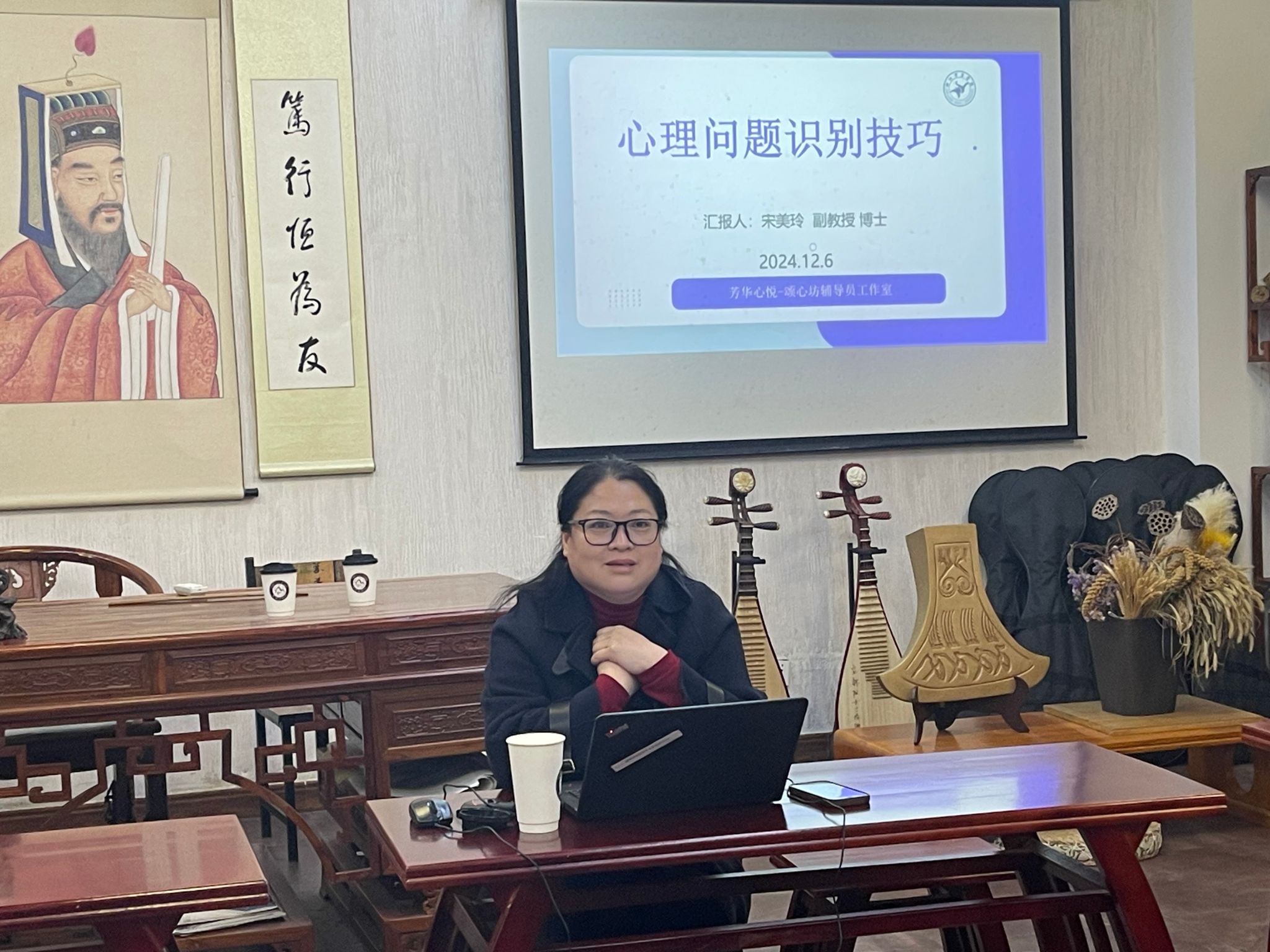 12月6日下午,英国威廉集团官网“大先生”读书沙龙在阳明学堂举行。本期沙龙围绕班级心理健康建设经验开展,特邀浙江万里公司副教授、国家二级心理咨询师宋美玲博士主讲,活动由英国威廉集团官网思政主管芦美丽主持,英国威廉集团官网经理蔡亮教授、党委副书记项安玲、班导师和全体辅导员参加了活动。
